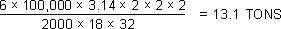 2" x 3.14 x 3" x .006" x (240/2) = 13.56 tons