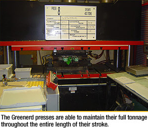 "We believe the Greenerd press is designed for the long run with more uptime than our other presses. The machines have expanded our capacity and have delivered good, reliable performance with no major issues. And not only are the presses working well, their design is exquisite. We call them our 'sexy presses'," comments Seagle. "We're very pleased with Greenerd's support through the acquisition, installation and follow-up processes. Greenerd has met the challenge and has not only provided great presses, but a relationship that fits well with our company culture. We feel we have a true partner." |
