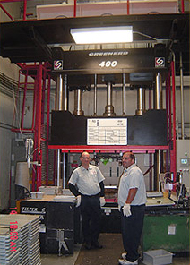 "We've gotten much better quality control results with the Greenerd presses and have reduced scrap on those presses by at least 20% over the older manually controlled hydraulic presses we were using," comments Childs. "The Greenerd presses allow you to precisely control the ram speed and the transition to press mode when it meets the material. The manual hydraulic presses with their mechanical limits adjustment required much more trial and error to achieve optimum speed and control."