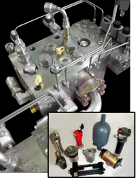 - Component Distribution: Offering a complete line of immediately available hydraulic components from respected manufacturers, with standard offerings including fixed displacement and variable displacement pumps, cylinders, linear actuators, rotary actuators, valves, filters, heat exchangers, instrumentation and accessory components.